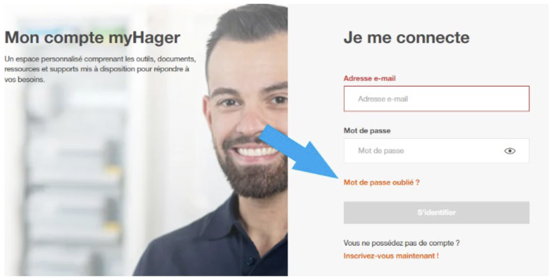 Afin de bénéficier des services de la plateforme myHager, vous devez vous connecter sur votre compte myHager, en revanche vous ne pouvez pas y accéder sans le e-mail et le mot de passe. Si vous avez oublié votre mot de passe, suivez les procédures ci-dessous.